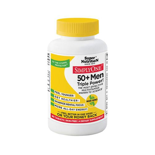 Super Nutrition Simply One Men?s 50+ Multivitamin with Supporting Herbs Iron Free An Iron-Free Blend of Vitamins Minerals and Herbal Extracts Support for Immune System and Energy Production* Formulated without Gluten or GMOs Scientifically-Developed Dietary Supplement The busy routine of daily life can make it difficult to focus on the nutritional value of every meal which could lead to your diet lacking several key nutrients. Super Nutrition SimplyOne Men?s 50+ Multivitamin with Supporting Herbs can help you make up for what you?re lacking by providing an essential blend of vitamins minerals and beneficial herbs. This unique iron-free formula was chosen specifically to support the health needs of men over 50 and can help support energy production and the immune system.* A Blend of Vitamins Minerals and BotanicalsOur Men?s 50+ Multivitamin is formulated with a variety of vitamins and minerals plus organic botanical antioxidants and herbal extracts to promote a healthy lifestyle.* Each dose c