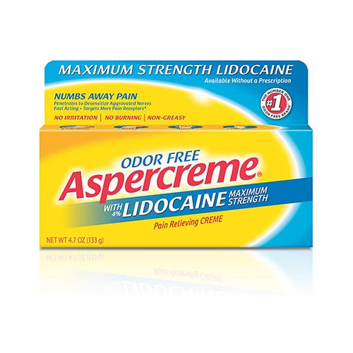 Aspercreme with Lidocaine Maximum Strength Pain Relief Cream targets more pain receptors than any other over-the-counter topical analgesic* to relieve pain at the source so you can forget your pain and embrace the day. The active ingredient in this non-greasy odor-free topical pain cream numbs away pain with no irritation and no burning for discreet and comfortable relief. With its powerful fast-acting formula Aspercreme numbing cream works in minutes and provides relief for hours. Use Aspercreme as a foot pain cream back pain cream muscle pain cream joint pain cream or arthritis pain relief cream. Aspercreme comes in odor-free creams lotions roll-ons gels and patches with or without lidocaine so you can get real time pain relief without a prescription. *Among counter-irritant topical pain relievers