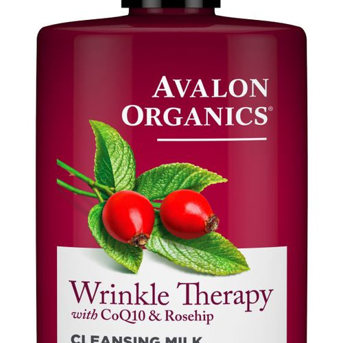 Avalon Organics Wrinkle Therapy Cleansing Milk gently moisturizes and lifts away impurities leaving skin smooth and hydrated without overdrying it. Made with a blend of organic botanicals and essential oils our plant-based cleanser is infused with Co-Enzyme Q10 and rosehip oil which are rich in skin-replenishing lipids vitamins and antioxidants to awaken skin and help counteract the visible signs of aging. For an added boost hyaluronic acid promotes moisture retention for visibly firmer smoother skin. This hypo-allergenic certified organic formula is made with non-GMO ingredients and no parabens harsh preservatives synthetic colors or fragrances phthalates or sulfates. It is also vegan and not tested on animals. Includes one 8.5 oz. bottle of Avalon Organics Wrinkle Therapy Cleansing Milk. Curated from nature?s pure resources Avalon Organics NSF organic certified skin care hair care and bath & body products are deep-rooted in a profound respect for the earth. Combining modern science with t
