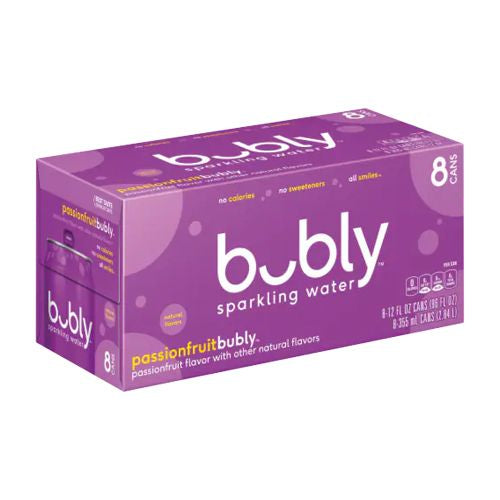 Sparkling Water, Passionfruit, 8 CansPassionfruit flavor with other natural flavors. Natural flavors. Per Can: 0 calories; 0 g sat fat (0% DV); 0 mg sodium (0% DV); 0 g total sugars. No calories. No sweeteners....