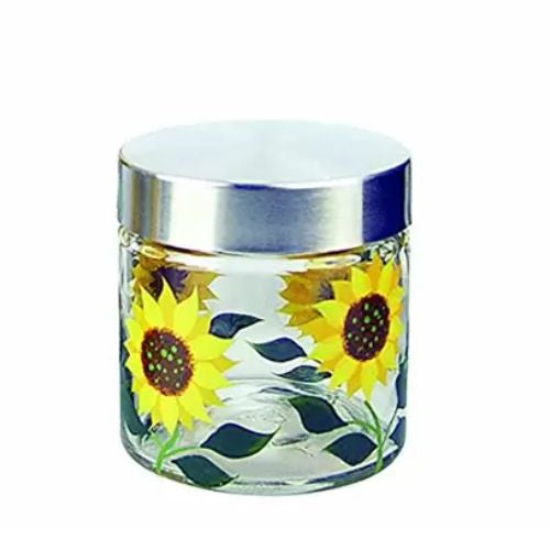 This Grant Howard 28-Ounce Sunflower Storage Jar lets you capture the feeling of spring in your home. It s great for storing food or serving drinks and it can even be used as a desk organizer.While empty this storage jar still works as a great decorative piece with it s delightful sunflower pattern.