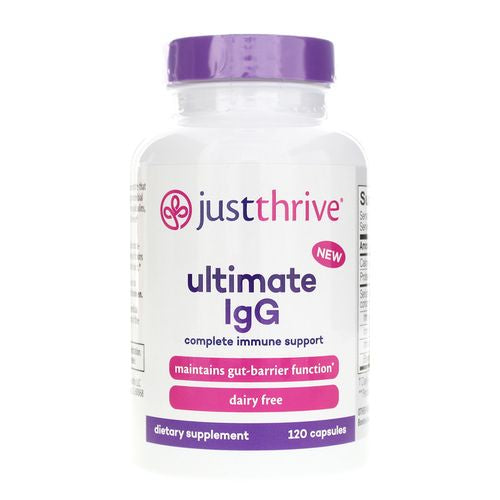 Just Thrive Ultimate IgG - Complete Gut Health and Immune Support - No Lactose Casein or Dairy 120 Vegetable Capsules Ultimate IgG (Immunoglobulin) provides the immune system extra support with immunoglobulin ?troops? to keep your body?s antibody soldiers from getting overwhelmed. An overworked immune system can lead to inflammatory responses. Just Thrive?s highly concentrated antibody formulation includes strong IgGs levels that help prevent inflammation and promote calmness in your body. Ultimate IgG may help you with uncomfortable damaging digestive issues by supporting the gastrointestinal tract?s protective barrier. Our proprietary blend contains no casein dairy lactose gluten or sugar. Instead it?s made of immunoglobulin concentrate and stored in vegetable capsules. Supports Healthy Intestinal Function Encourages Optimal Health and Strengthening of Your Gut Barrier Increases Nutrient Absorption to Support Digestion Boosts the Effectiveness of Probiotics Helps Immune System React Co