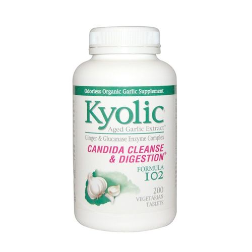 Kyolic begins with organically grown garlic bulbs well balanced in nutrients. Kyolic combines only the finest quality ingredients. As part of a healthy diet this select combination of Aged Garlic Extract and enzymes in Kyolic Aged Garlic Extract plus Enzyme Formula 102 Vegetarian stimulates a healthy digestive system. Take the best - KYOLIC Aged Garlic Extract the most scientifically researched and best selling odorless Sociable Garlic. Formula 102 Kyolic. Dietary supplement. Sociable garlic. Suitable for vegetarians. Kyolic begins with organically+ grown garlic bulbs well balanced in nutrients. The garlic cloves undergo a unique aging process to mellow harsh and odoriferous crude compounds into stable and beneficial Aged Garlic Extract which is guaranteed Odorless. Kyolic contains antioxidant properties and is standardized with S-allyl cysteine (SAC) a water soluble compound characteristic of Aged garlic Extract. (+ in compliance with the California Organic food Act of 1990).