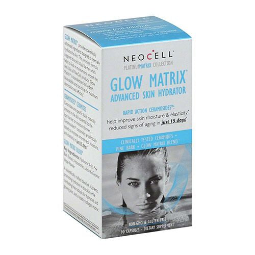Glow Matrix provides scientifically advanced ingredients designed to internally hydrate the skin. This premium formula supports the skin s lipid barrier which helps to lock in moisture and smooth the skin. Like all NeoCell products Glow Matrix is standardized to be both bioavailable and bioactive for maximum absorption and efficacy. Rapid Action Ceramosides: Help improve skin moisture & elasticity* Reduced signed of aging in just 15 days* Ceramosides Ceramides Ceramides are specific lipids naturally present in the skin essential to the lipid barrier or moisture barrier. Ceramosides ceramides are clinically tested to increase smoothness moisture and elasticity in just 15 days.*+ Glow Matrix Blend Key Ingredients: Hyaluronic Acid Pine Bark Extract Astaxanthin Lutein & Coconut Water Powder. A scientifically crafted blend of nutrients promoting hydration in the skin while combating free radicals for hydrated and glowing skin and a healthy collagen matrix.* Suggested Usage: Take 3 capsules daily.