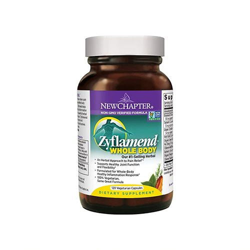 New Chapter - Zyflamend Whole Body - 120 Liquid Capsules New Chapter Zyflamend Whole Body is New Chapter s herbal formula for pain relief after exercise. Zyflamend s ten herbs have been traditionally used to support health and well-being. Chinese Goldthread Hu Zhang Chinese Skullcap and Barberry are time-honored tonic herbs in the Chinese herbal tradition. Rosemary and Oregano are native to the Mediterranean region. Zyflamend s Hu Zhang is a natural source of resveratrol a part of the healthy Mediterranean diet. Turmeric Ginger Green Tea and Holy Basil are common elements in Asian and Indian wellness regimes. New Chapter Zyflamend features An Herbal Approach to Pain Relief Formulated for Whole-Body Healthy Inflammation Response 100% Vegetarian 10 Pure Herbs.One Potent Formula Healthy Inflammation Response Zyflamend helps balance and support the whole body s natural healthy inflammation response after excercise.