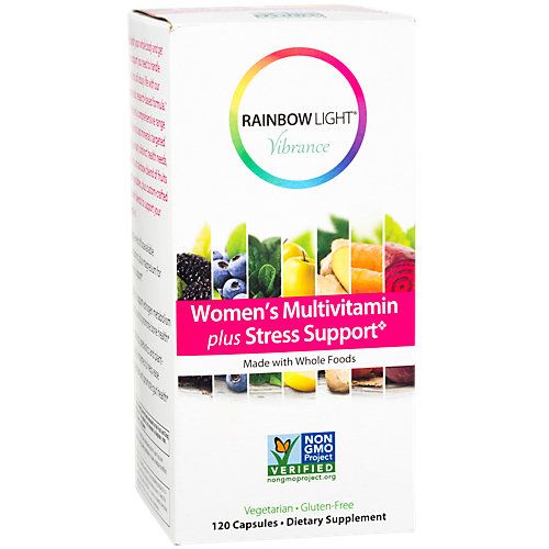 Get the support you need to handle the stress of a busy life with new Rainbow Light Vibrance Women's Multivitamin plus Stress Support. This advanced, research-based formula is specifically formulated to support a woman's distinct health needs with a wide variety of vitamins and minerals, plus targeted nutrients to ease daily stress levels. To promote bone health, you get 100 mg of calcium, 1 mg of boron and 1, 000 IU of vitamin D. For support of estrogen metabolism, the formula includes diindolylmethane (DIM). You get a comprehensive B-vitamin complex and magnesium to support a healthy stress response. And, to ease digestive complaints and promote gut health, the formula includes 75 million CFU of probiotics, plus prebiotics, and a full spectrum of plant-sourced digestive enzymes.