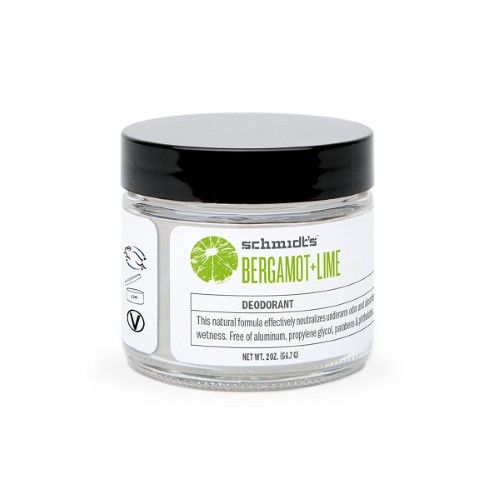 Schmidt s Deodorant Jar Bergamot + Lime 2 Oz. Schmidt s Deodorant Bergamot + Lime Natural Deodorant is an all natural formula. Schmidt s Deodorant Bergamot + Lime Natural Deodorant effectively neutralizes underarm odor and absorbs wetness. Schmidt s Deodorant Bergamot + Lime Natural Deodorant is reminiscent of a summer?s day with its bright citrus scent. Schmidt s Deodorant Bergamot + Lime Natural Deodorant is a true pleasure to wear. The essential oils in Schmidt s Deodorant Bergamot + Lime Natural Deodorant lend additional disinfectant and skin healing benefits. Reminiscent of a summer s day with its bright citrus scent Bergamot + Lime is a true pleasure to wear Award-winning formula provides all-day odor protection and wetness relief Easily absorbed. Non-greasy non-sticky feel Plant-based powders protect against wetness without the use of aluminum Free of aluminum propylene glycol parabens & phthalates Ingredients: Butyrospermum parkii (shea butter) Sodium bicarbonate (baking soda) Maranta ar