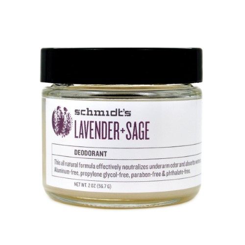 As seen on NBC's Today Show, Hallmark Channel, Fox News, in magazines such as Nylon, Better Homes & Gardens, Self, US Weekly, and endorsed by celebrities Alicia Silverstone, Sophie Uliano, and many more. The clean, herbaceous fragrance of Lavender + Sage is tranquil and soothing. A top-selling item, Lavender + Sage is Schmidt's most popular deodorant! The clean, herbaceous fragrance of Lavender + Sage is tranquil and soothing. A top-selling item, Lavender + Sage is Schmidt's most popular deodorant! Award-winning natural formula - Free of aluminum, phthalates, and parabens Easily absorbed. Non-greasy, non-sticky feel Plant-based powders protect against wetness without the use of aluminum Free of aluminum, propylene glycol, parabens & phthalates Ingredients: Butyrospermum parkii (shea butter), Sodium bicarbonate (baking soda), Maranta arundinacea (arrowroot) powder, Theobroma cacao (cocoa) seed butter, Salvia sclarea (clary sage) essential oil, Lavandula (lavender) essential oil, Tocopherol (vitamin E),