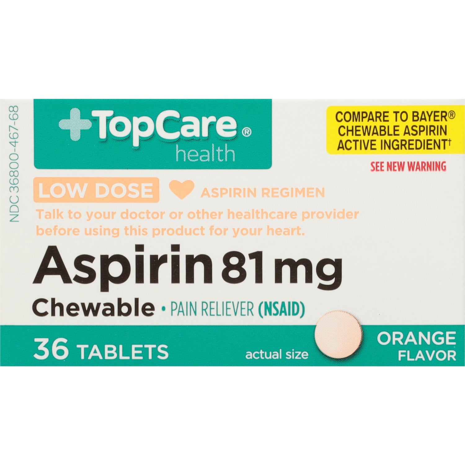 Top Care Health Low Dose Tablet Chewable Aspirin 81 Mg, 36 tablets