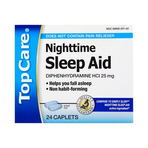 Top Care Nighttime Sleep Aid 24 Tablets/25mg- Compare To Simply Sleep Exp. 11/16